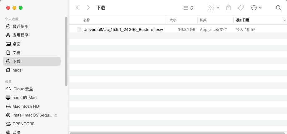 之后下载 macOS 的 ipsw 固件,可以在虚拟机下载也可以在主机下载后拷进去。